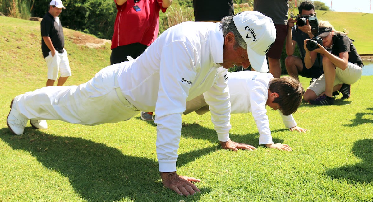 Gary Player is 90 jaar. Dat noemen ze een respectabele leeftijd en dat zal het ook wel zijn. Hij won negen majors, waar hij er op de Senior Tour nog eens negen aan toevoegde. Applaus! Maar wat te denken van deze uitspraak: “Vier keer per week werk ik aan mezelf in een fitnesszaal. Ik ben op mijn 89e fitter dan veel 40-jarige mensen. Ik zweer bij twee maaltijden per dag en ik eet nooit ’s avonds. Ik eet ook geen spek, want dat is puur vet, dus vergif. Tevens neem ik niet te veel brood, geen boter, maar wel olijfolie. Ik eet veel fruit en groente. Ik doe alles om in vorm te blijven, want mensen met overgewicht worden over het algemeen niet oud.”