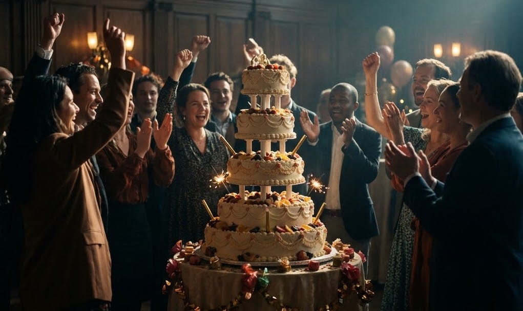 Zullen we die taart samen aansnijden? 😄