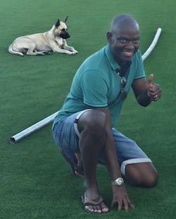 In dat lichtblauwe stadionnetje in de wijk Brievengat waande ik mij bij een amateurclub. Ik parkeerde de auto gratis en voor niks er pal naast, opende een onbewaakte deur, liep door een onbewaakte gang, opende nog een onbewaakte deur en stond toen al onder de meedogenloos brandende Caribische zon op het gloednieuwe kunstgrasveld, waarvan de randen nog los naast de zijlijn lagen. Ik liep er één levend wezen tegen het lijf, namelijk een van de 40.000 zwerfhonden die Kòrsou rijk is, zoals vrijwel alle exemplaren aldaar een ’Westpointer’. Het beest verwelkomde mij alsof ik al jaren zijn baas was en vleide zich vervolgens, nabij de middenstip, weer neer op het veld.