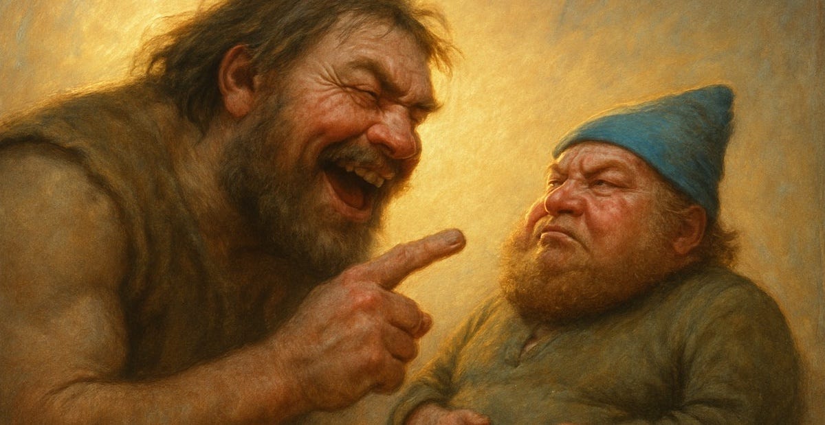 Arthur: Oom Rob, ik ben benieuwd of je boomerhumor aanslaat bij de jonge lezers van de Revu. Zo’n grap met een baard over mijn dwerggroei deed het vroeger natuurlijk goed tussen de schuifdeuren in je ouderlijk huis in Alkmaar, waar de glaasjes met Caballero-sigaretten zonder filter klaar stonden en waar je familieleden na het ledigen van een emmer advocaat van het merk Zwarte Kip, de polonaise deden op de klanken van het Cocktail-trio. Maar tegenwoordig is dwarfshaming alleen nog leuk als het over een gnoom als Sander Schimmelpenninck gaat. Net zoals fatshaming alleen maar leuk is als het Asha ten Broeke betreft, de bipolaire huiskamerolifant van de Azijnbode.